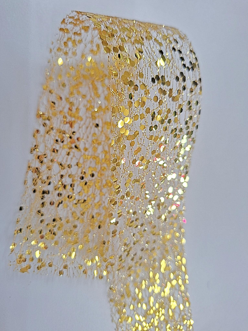 Glitter Sequin Deco Mesh Ribbon 50mm - Gold