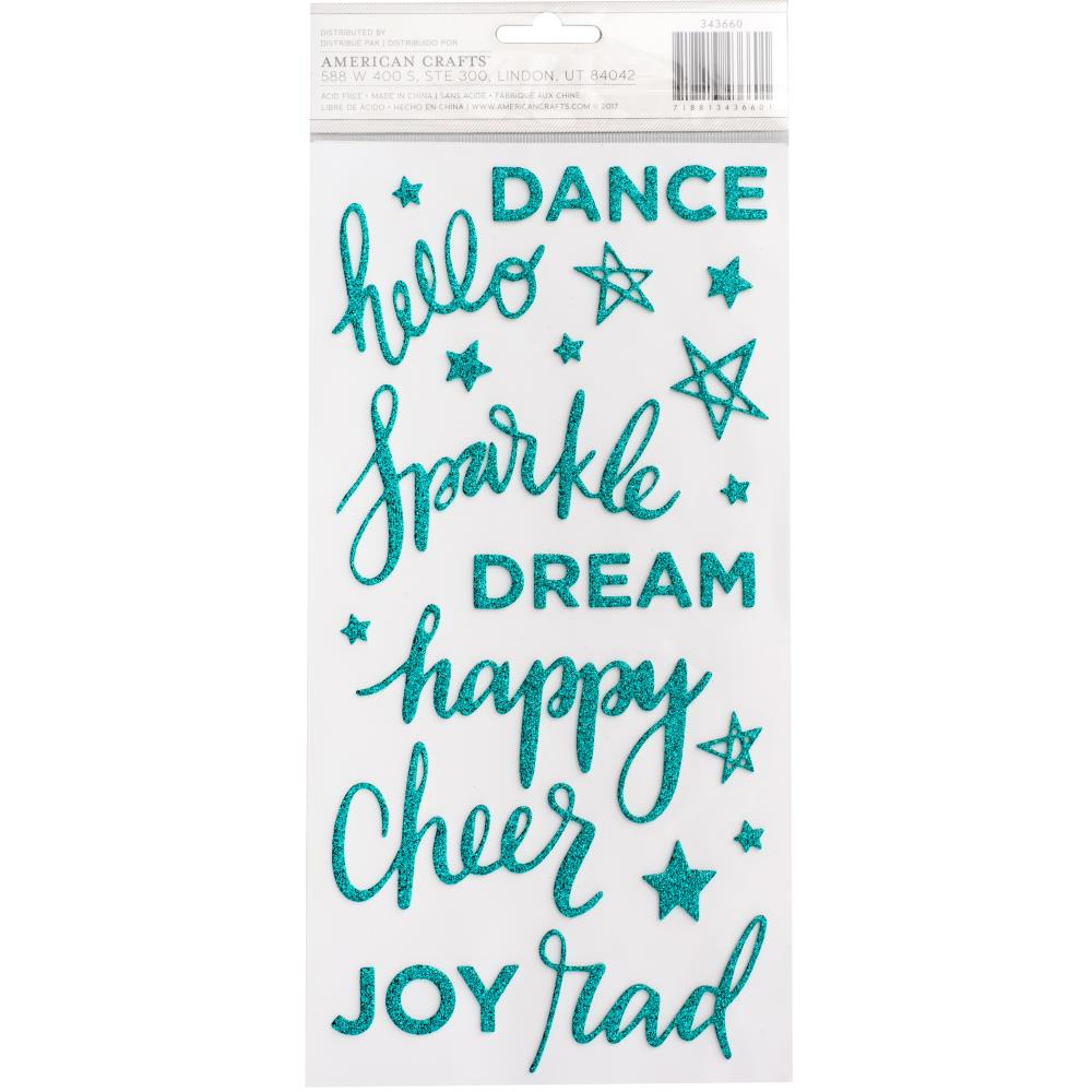 - Shimelle Glitter Girl, Sparkle, Phrases, Teal, 58 foam stickers.