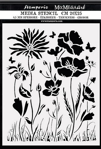 Stamperia Stencil 20cm x 25cm - Atelier poppy and flower